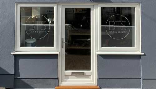 Inside the premises, we installed a high-quality wall vinyl; an 800mm diameter BTS Hair & Beauty logo, using the same branding guidelines. For this sign, we used a black gloss vinyl in order for the logo to stand out against the lighter wall colour.