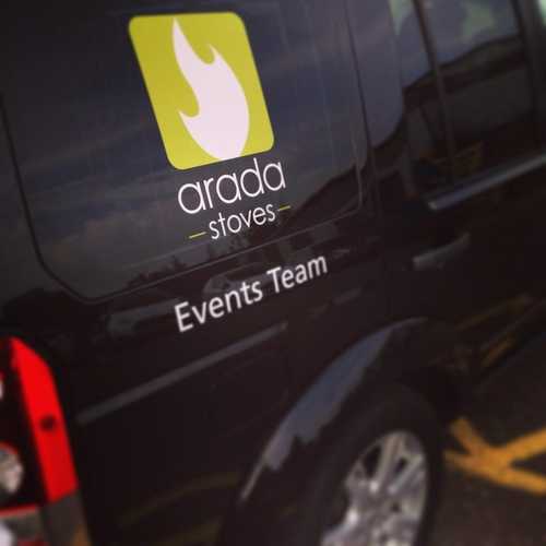 But it’s not just at massive events like these where the Arada team are able to display the diverse style of stoves it produces; there are an abundance of open events and display days all over the country, where the company ensures its attendance. But attending all these events means transporting the stoves and promotional displays, and not forgetting the sales and events team themselves, to and from each date in the diary. To do this, Arada has its very own promotional vehicle – its sign-written Land Rover. Used to pull the Arada marketing trailer - the mobile showroom - the Land Rover has been given a sign-written makeover by Creative Solutions to ensure that wherever it travels, it makes an impact in spreading the Arada name and brand!