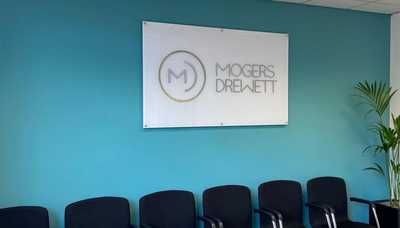 Mogers Drewett commissioned Creative Solutions to print and install two Logo Panel acrylic signs for their Sherborne office to welcome visitors and clients into their Reception Area and Board Room.