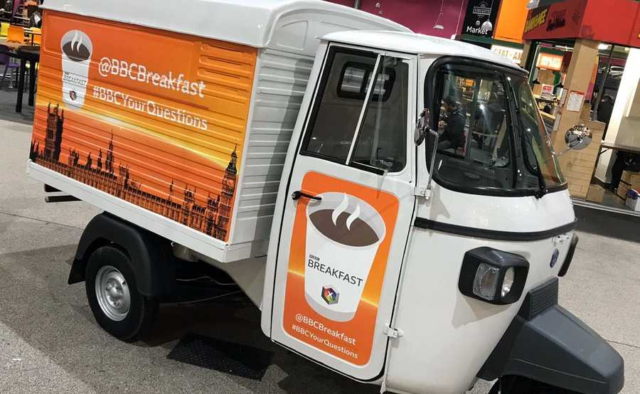 In one of our most prominent projects to date, Creative Solutions was commissioned to create bespoke branding for the BBC Breakfast programme’s Election 2019 tuk tuk. The famous BBC coffee cart was provided by tuk tuk company Tukxi, who commissioned us to create the vehicle graphics which will be seen by millions of viewers over the next few weeks.