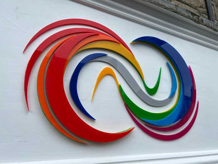 Whilst on site the idea was struck to make the logo out of coloured acrylic, layered, to make the logo 3 dimensional. Nothing like this stands in the immediate area of the gallery, nor I believe have we created a logo like this before! This fantastic idea would act as a focus point to draw peoples eye, but simple and contemporary in its construction.