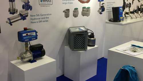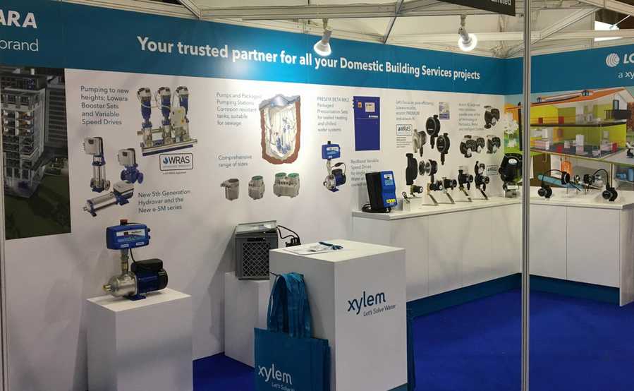 Creative Solutions were briefed with creating a bespoke exhibition stand that could be used at various events across the UK. Xylem provided sketches as part of the brief and specified that the stand needed to be easily transported once broken down. The key requirements were a seamless graphic back wall, cupboards with a worktop and variou plinths on which they could stand pumps on.