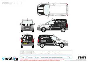 For these logo graphics, the van underneath is white with each black vinyl section overlayed as per the brief above. The white lettering is then added over the top of the black as a second layer to look like a cut-out effect.