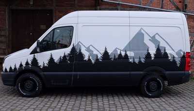 * motor caravan-style graphics on both sides
