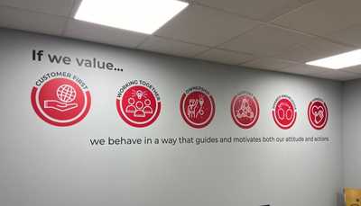 We are currently revising our own company values and mission for the New Year at Creative, so it is great to see other companies we work with so closely doing the same, and seeing just how many ways a display can take shape! We recently did another unique style installation for Powrmatic's Core Values and Mission Statement.