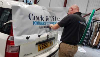 The Cork and Tile were looking to do just that. Their Fiat Panda delivery car, which does plenty of miles across Exeter and the surrounding areas, needed something of a makeover. The client wanted us to supply some high-quality vehicle graphics to promote the company name whilst out on deliveries, AND give the car a vital injection of professionalism.