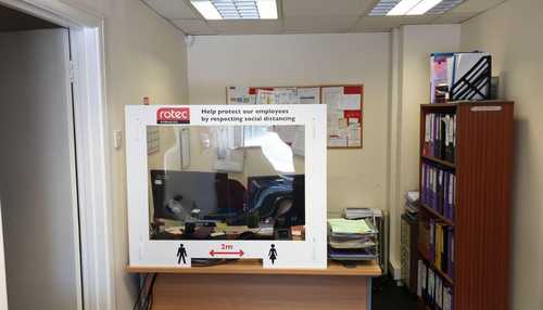From our brand-new COVID 19 Range, Rotec got in touch with Creative Solutions about providing some printed protective wraps which would be installed on the reception desk at their depot.
