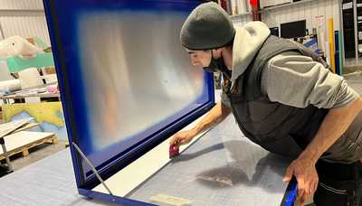 With the colour of frame chosen, the backing panel of the noticeboard can also be supplied with a vinyl film attached either with a design, block colour or left without to enhance your display. In this instance, Freshwater chose to continue the blue in the frame onto the backing panel for a clean external display.