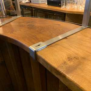 The screens were housed in custom-made stainless steel brackets that would clamp onto the three bars within the premises—this meant that they could be removed without damaging the wooden bar tops. For one section of the bar, we were required to bend 5mm acrylic to fit the space; a process limited by the property of the material.