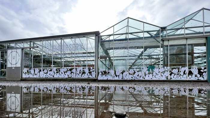 The team at Groves got in touch to have a custom designed decal installation to bring some interim colour and life to their large plant nursery greenhouse. The nursery allows visitors to look in on all the extraordinary growing done directly on-site at Groves, with the impressive structure creating a fantastic look-in experience. The best way to dress a large glass space whilst not effecting the ability to peak inside? Window graphics.