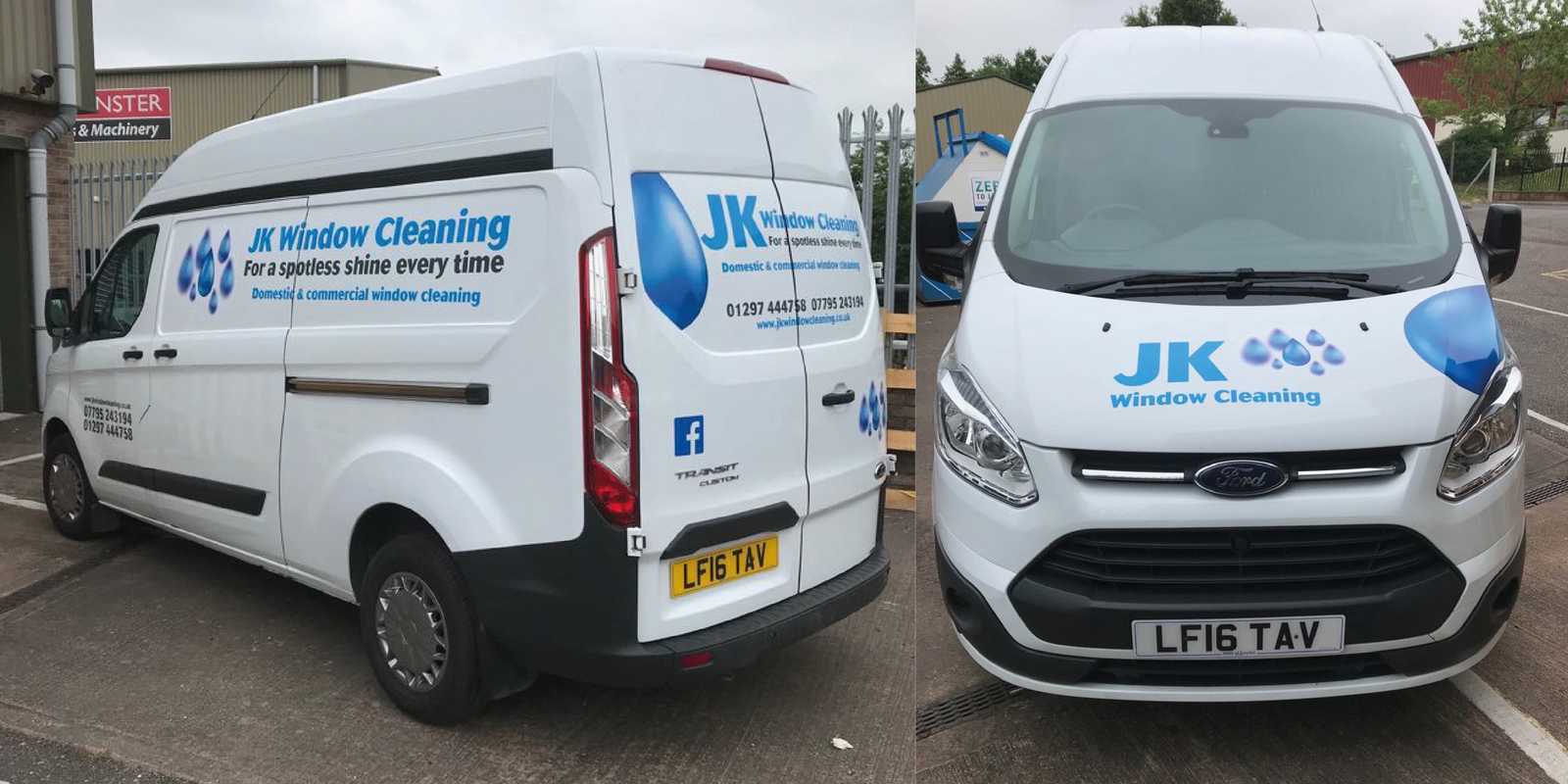 JK Windows operate a small fleet of vehicles that are used to carry equipment and transport crew. We were contacted by them to design vehicle graphics for their new Ford Transit Custom in L2 H2 specification. We had worked with them previously to produce graphics for their old van which they were very happy with.