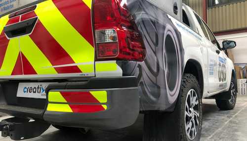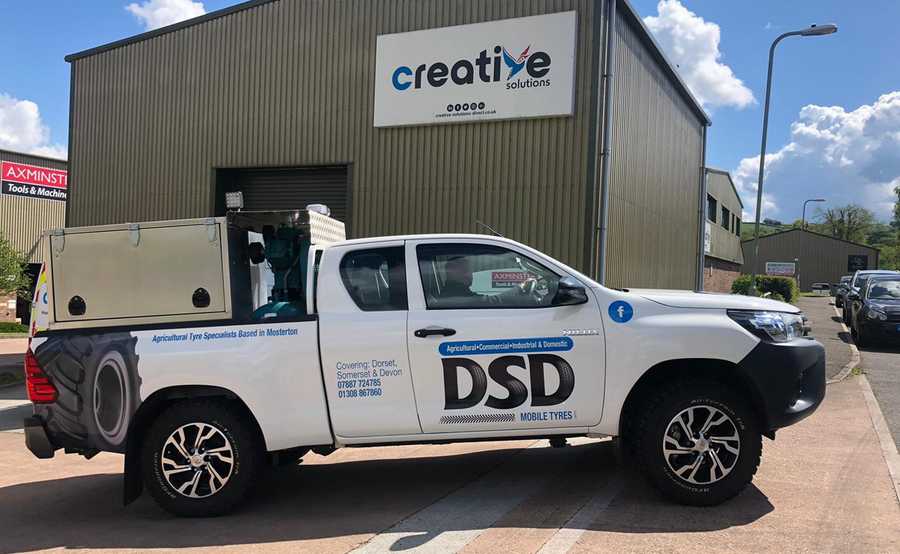 DSD Mobile Tyres contacted Creative Solutions about providing some vehicle graphics and a chevron kit for their company Toyota Hilux truck.