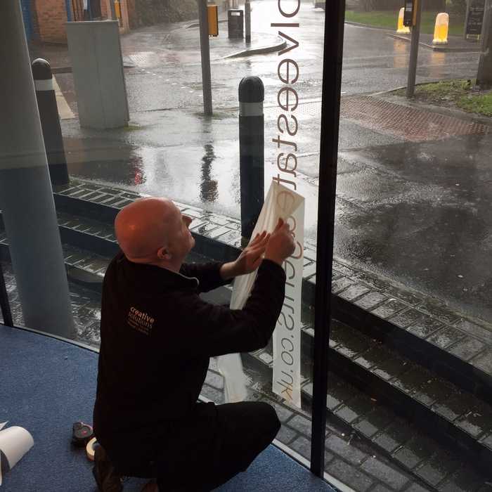 The window graphics were applied to the inside of the windows. The windows needed to be cleaned thoroughly to ensure grime is removed to allow the graphics to adhere properly and look their best. Due to the Estate Agent's main presence being online the website was used for the window vinyl signage.