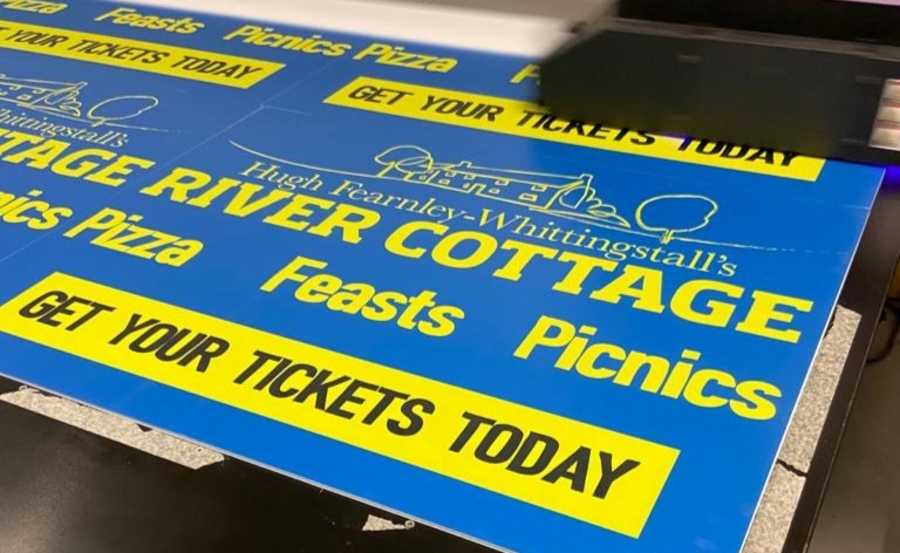 River Cottage were very happy with the signage provided. The high-quality printed boards more than serves their purpose as an effective and aesthetically strong promotional device. The vibrant yellow really pops against the blue background and the text is both striking and clear. Almost good enough to eat!