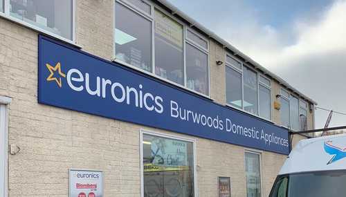 The sign was finished with a highly durable NovaTrim composite frame with a 35mm face. Both the Euronics logo and the Burwoods bold font were printed in a stunning bright white which achieves maximum visual impact against the blue background.