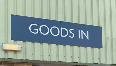 With the artwork supplied by a local agency and sized ready in-house by the Design Team, this then is given to the dedicated Print and Production staff for assembly. Our Installers then set about re-wrapping the two aluminium tray signs with matte laminated vinyl. We supplied and fitted full-colour printed aluminium composite boards, finished with our matte laminate for the main entrance sign, new 'Goods In', 'Reserved' parking bays and replacement warehouse sign. All bolt holes were included, allowing for easy installation and replacement of the old signage with our rented Cherry Picker.
