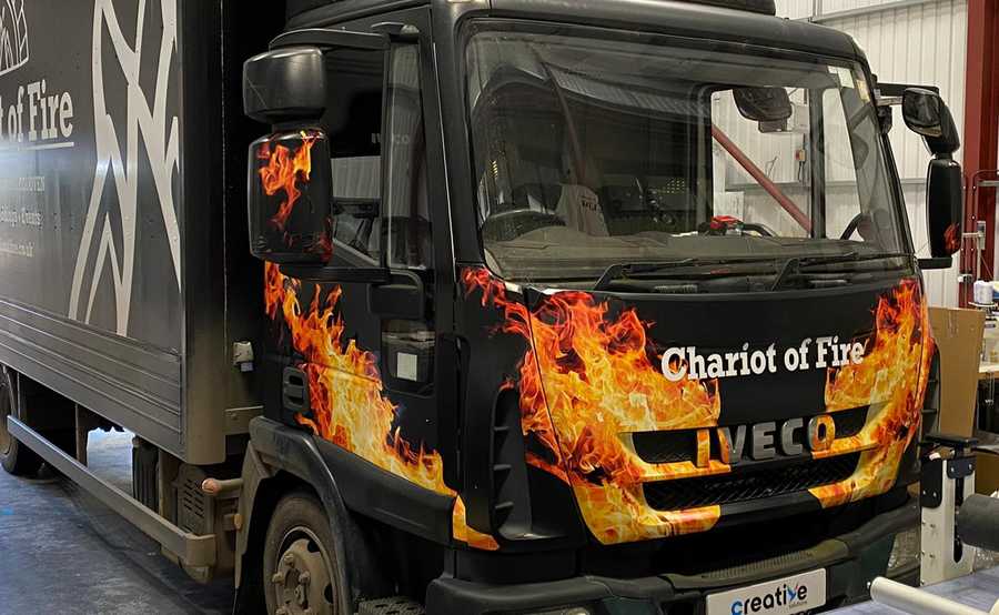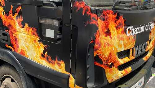 Flames, Neon Wing Mirrors, Pink Glittery Go-Faster Racing Stripes - when it comes to vinyl vehicle graphics, your imagination really is the limit! As you can tell, we were super excited when Chariot of Fire got in touch to ask for, "Flames. Real flames", you can't help but imagine Hot Rods, Skeleton Motorbikes and a thin crust sizzling pepperoni pizza.