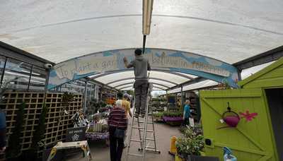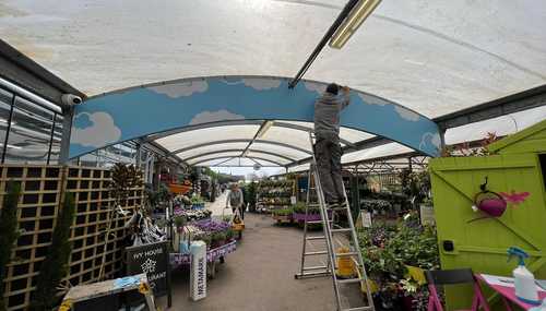 To support the large polytunnel structure, the metal pillars and struts across the roof are wide enough to support some great interior advertisements and displays. Grove wanted to display a motivational message for their green-fingered clients on a pre-installed blue fascia panel, using the 6meter opening to its advantage!