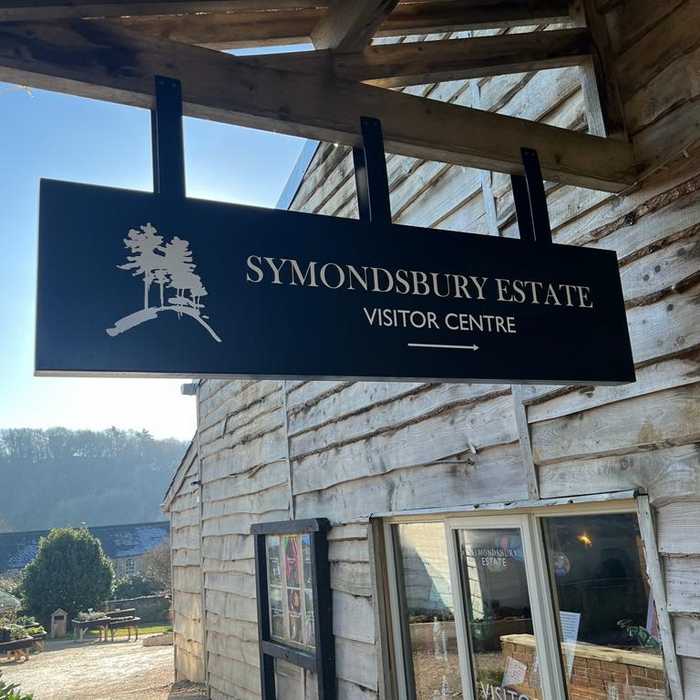 Working with Symondsbury Estate over the years, we have a firm grasp on the organisations branding, look and feel when they are adding to their signage and displays. The team contacted Creative Solutions wanting a new suspended aluminium tray sign for their visitors centre, and wanted it to feature the distinctive tree logo, typography and directional arrow.