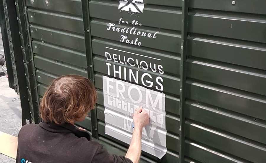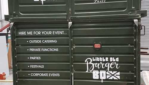 The good people from the independent food vendors, Little Old Burger Box, came to Creative Solutions with an old fashioned horse trailer that was in the process of being converted into a fully-functioning catering outlet. Our role in the transformation would be to provide vehicle graphics for the trailer.
