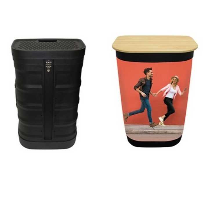 Convertible cases and plinths act as a brilliant way to not only store and protect your display graphics , pop-up displays, banner stands and hardware, they can then be converted into a handy exhibition counter, where staff can store their personal belongings inside without cluttering the stand. The graphic wrap can also mirror the larger graphic, or depict a key feature.