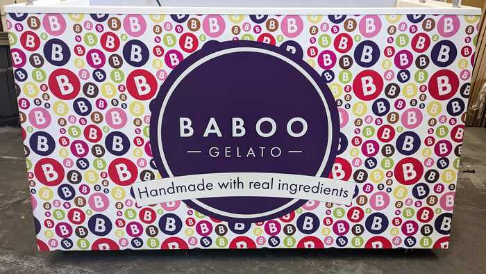 The Baboo Team recently needed a new ice cream chest freezer wrapped in their iconic branding to fit it at a Baboo site.