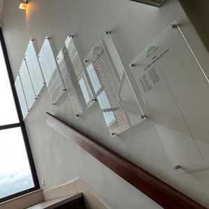Once quality checked, it was time for the boards to go back to Cricket St Thomas Golf Club, and be re-mounted on the walls above the stairs. The stain chrome finish stand-off locator sign fixings give the display boards the perfect amount of depth and authority as you climb the stairs, whilst also allowing for easy cleaning front and back in a high-traffic area.