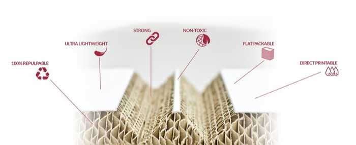 Xanita Print Board is a natural fibre-based board consisting of 100% recycled cardboard boxes, formed into a kraft core, sandwiched between white, repulpable liners. Its high-crush strength paper core is manufactured from post-consumer recycled paper and sugar cane waste. Due to its kraft content, Xanita Board is recyclable in paper-recycling bins, and even repulpable to be recycled again!