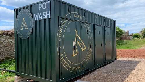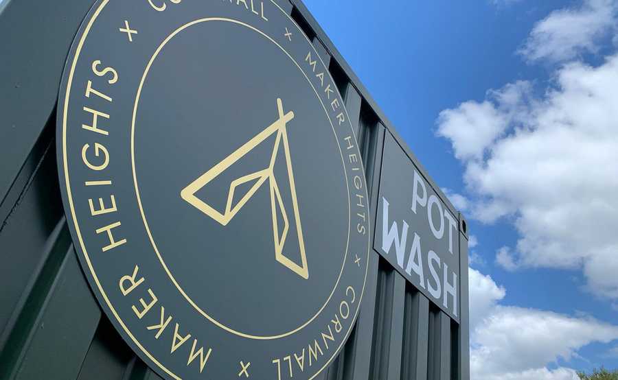 To spot the container from all angles we created another sign that would be mounted to the small end of the container with the Maker Heights Campsite logo once more. It was agreed this would be applied to a flat surface to stand out next to the pre-fitted 'Pot Wash' sign.