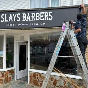 Shop Fascia Signage & Window Graphics for Slays Barbers, Seaton