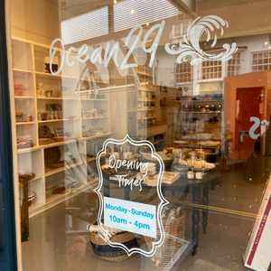 Completed in the centre of the window we applied a matt white vinyl for the team at Ocean 29 to display their opening hours. This white frame-like design acts as a border for a interchangeable vinyl print to be displayed in the centre. with most businesses, hours can vary and change pending on the season of the year, so have a flexible display that works for you is key.