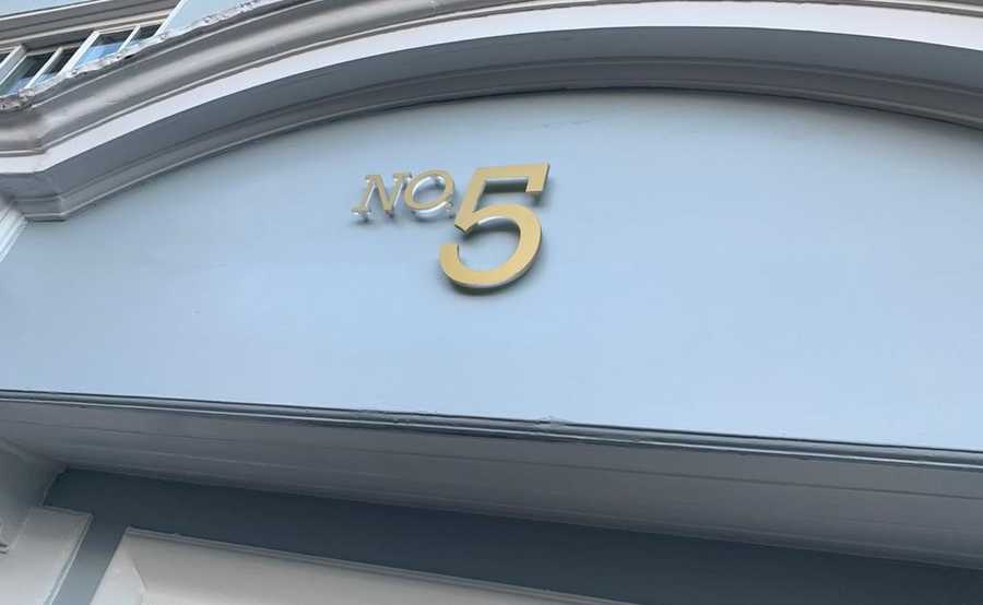 A private client got in touch with the team here at Creative Solutions looking to inject a bit of style and sophistication to the doorway of their residential property. The client requested that we design, create and install a stand-off letter acrylic No.5 sign for the cove above the entrance of their front door.