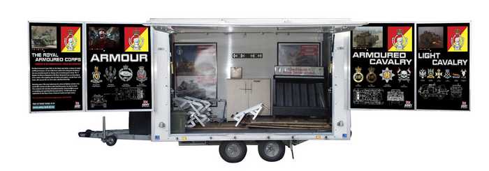 We were contacted by the RAC who wanted to rebrand their Corps trailer to better fit their new messaging. Their existing exhibition trailer was used for recruiting, and it would perform the same role only with a fresher message. With the new graphics, they wanted to feature the Army Tank and Corps logos prominently. We were also asked to remove any old graphics from the trailer and install the new graphics as part of the project.