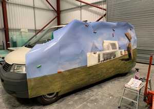 After some discussion with the client, it was decided that the perfect way to achieve those two objectives would be for us to supply a full vehicle wrap for his VW Transporter on which we could print photographic-quality images of his work.