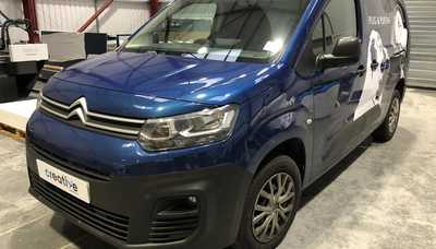 The white gloss vinyl wrap used for the logo and company name, on the dark blue background produced an effective and eye-catching final result. One which the client was very pleased with. Best in show!
