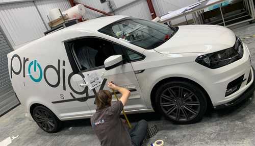 Prodigy IT Solutions approached Creative Solutions about creating some vehicle graphics for their mini fleet of Volkswagen Caddy company vans.