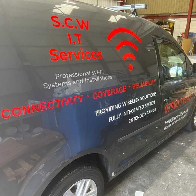 Branding can span from full coverage wraps, to individual letters and graphics like these for SCW I.T. Services. You can encompass as much of your vehicle as you want within your design ideas and budget, with no personal vehicle or car, lorry, or fleet of vehicles an issue!