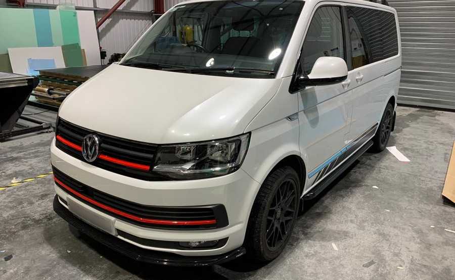 Firstly, we supplied the client with smart matte black stripes which would be applied to the bottom of the doors and rear sections along the Caravelle. This provided a sharp, modern aesthetic for the vehicle; the stripes are clean and visually impactful.