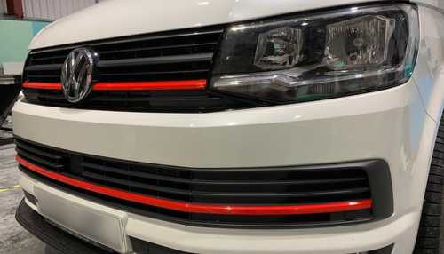 We were also able to apply gloss red and matte black strips to the VW’s grill. The punches of red colour, onto the black grill, really create a striking finish.
