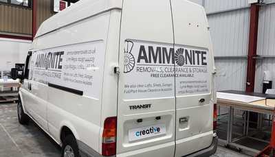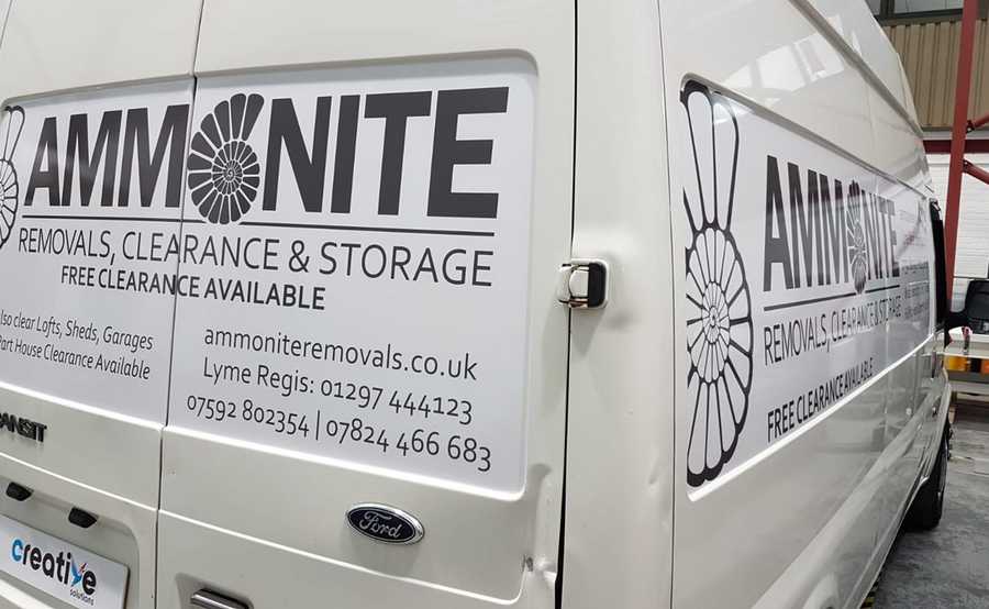 As a previous customer of Creative Solutions, Ammonite Removals came back to us with a request for a set of vehicle graphics for one of their Ford Transit vans. Importantly, the designs needed to conform with the branding and style of the vehicle signage we had supplied on an early project. This included the company name with the distinctive ammonite logo.