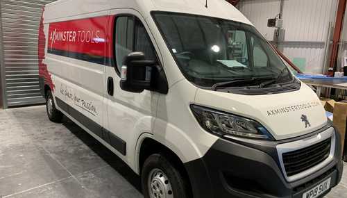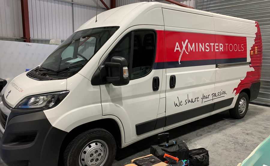 On this occasion, Axminster Tools were looking for some high-quality vehicle graphics for their company Peugeot Boxer van. The artwork for the van needed to align perfectly with the firm’s rebranding drive—in terms of colour and design choices—while delivering a strong, professional image of the company. The vehicle would be in regular use, so it was fundamental that the graphics projected a sense of quality to potential customers.