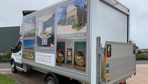 For a South West-based construction firm like C G Fry & Son, van graphics are a crucial advertising tool and go a long way towards maintaining strong brand identity. Because of the large, flat dimensions of the box van, high-quality prints applied to the side of the vehicle will act as the perfect mobile billboard—displaying properties and house interiors to the public.