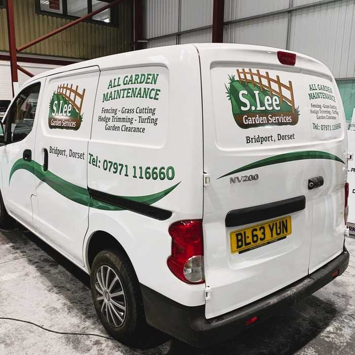 Following the brief, we provided S. Lee Gardening Services with full-colour wide-format printed vehicle graphics onto premium self-adhesive gloss white vinyl. This was then finished with a protective laminate which rendered the artwork fully waterproof.