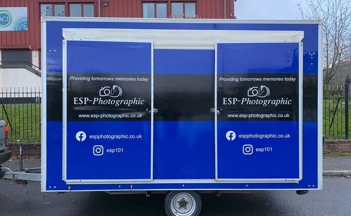 The ESP Sales Trailer was purposely made to offer their clients a space to view photography taken on the day, and print these in high-resolution ready to take home! As the Sales Trailer would be going on the road and pitched at events, it was essential the trailer get their text graphics, logo and social media handles around the trailer, viewable from all angles.
