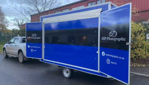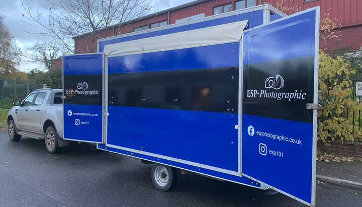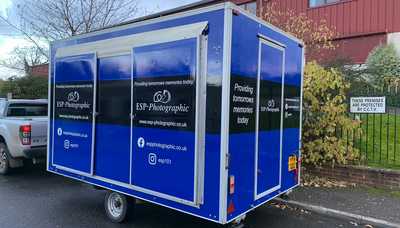 We have previously supplied ESP-Photographic with van wraps, and feather flags for their event signage displays. Being able to work with them on their newly acquired Sales Trailer thereabout completes the package; they are now ready to tour the UK's events with a fully branded set-up.