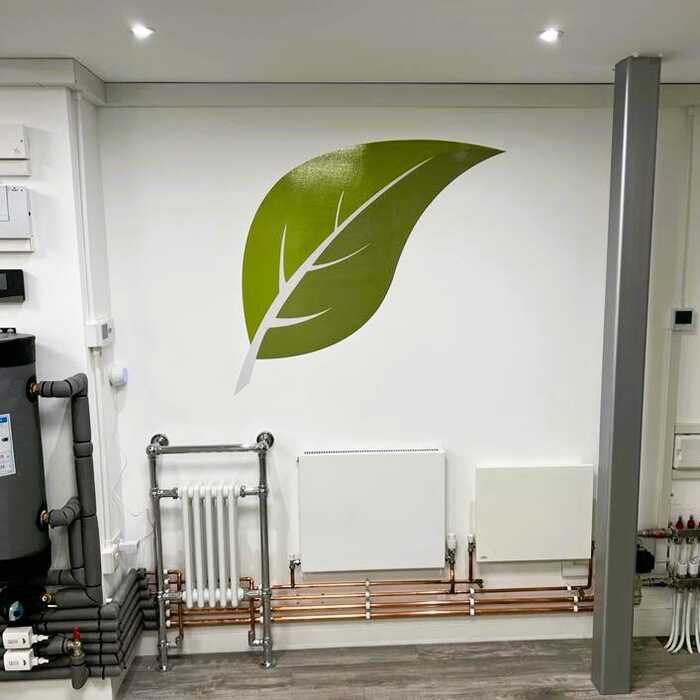 The team at Total Renewable's got in touch to add to their showroom branded displays with a simple yet effective wall graphic to fill in a white space.