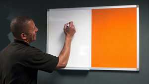 If you need more of a public display than a presentation tool, this half'n'half whiteboard option is more than up to the job. Choose between fabric, felt or cork to compliment your whiteboard half.