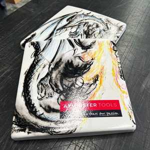 You may remember a while back Creative Solutions printed and wrapped the 50 Year Anniversary special bandsaw doors to celebrate an Axminster Tools milestone, so it was amazing to see this hand-drawn dragon and flames come through the Studio!