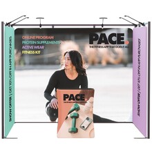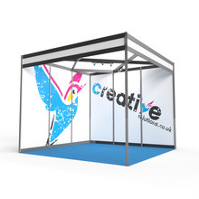 Description: A free-standing system that sits right up against your shell scheme stand walls. High-quality fabric graphics that can be stretched over the frame system.