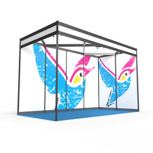 Freestanding: Freestanding graphic displays stand in front of your exhibition stand walls, but do not attach to them. These options will include a hardware frame and fabric graphic ‘sleeve’.
